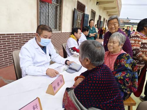 尽管当日气温偏凉,但活动现场仍然吸引了小营村及周边乡村数百名老年人和其他各界群众热情参加。在志愿者的引导下,村民们有序参加检查问诊、接受健康指导。来自焦作市人民医院消化、心胸外、内分泌、超声、影像等科室的10余名专家发挥各自专长,耐心细致地向每位前来问诊的群众详细询问身体状况,认真把脉问诊,解答健康疑问,给出诊疗用药建议,并免费提供彩超、心电图、血压测量等检查。针对不同病症和个体差异,不仅给出专业健康指导和诊疗建议,还贴心询问日常饮食、用药和生活习惯等注意事项,并叮嘱他们及时就医、定期复查。